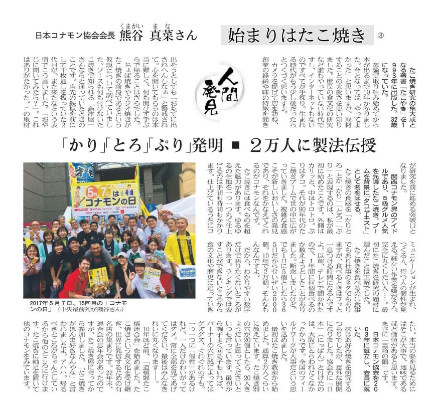 「始まりはたこ焼き」@日経電子版、日経新聞(夕刊)の「人間発見」(5回シリーズ)